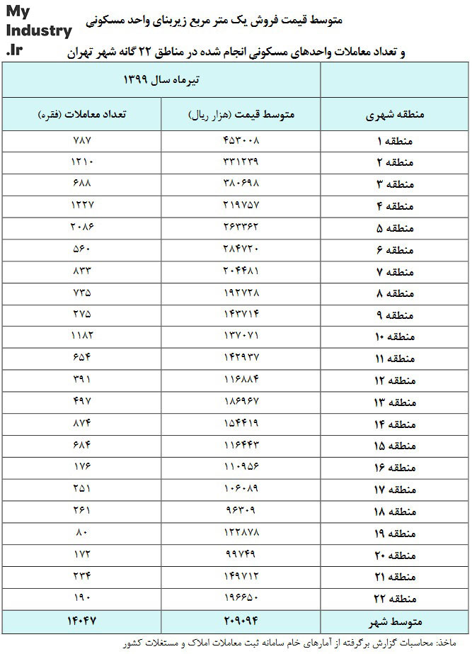 در پایان باید اشاره کنیم که این مطالعات و جداول از سامانه ثبت معاملات املاک و مستغلات کشور استخراج شده است و ممکن است برخی معاملات غیررسمی در قیمتهای نامتعارف در این مطالعات و آمار نیامده باشد. اما به منظور اطمینان از صحت معاملات اکثر معاملات توسط شهروندان در این سامانه ثبت می شود و مطالعات این خبر در پایگاه اطلاع رسانی صنعت، برای پژوهشگران اقتصادی و شهروندان قابل استناد است.