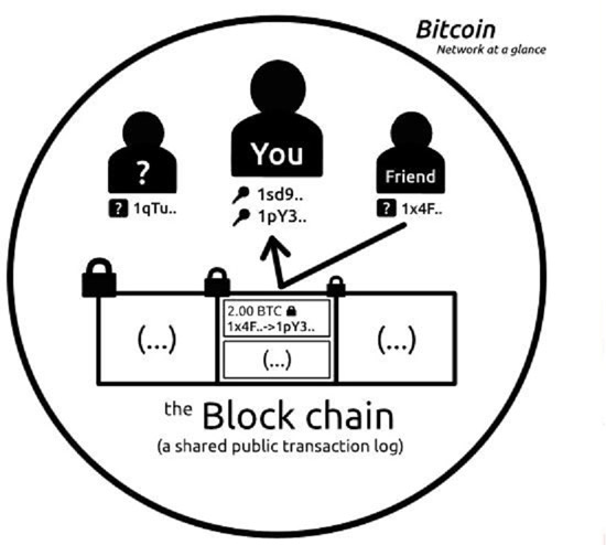 زنجیره بلوکی، یک سند عمومی ثبت تراکنش های بیتکوینی برای حفظ ترتیب زمانی است. زنجیره بلوکی بین همه کاربران بیتکوین به اشتراک گذاشته شده است و برای بررسی مقادیر آدرس های بیتکوین و جلوگیری از پرداخت دوگانه می باشد.