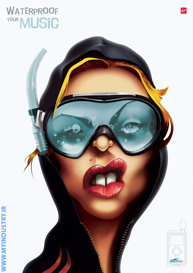 در کمپین تبلیغاتی h2o audio که در سال ۲۰۰۹ و با استفاده از تصاویر کاریکاتوری شخصیتهای شناخته شده ی موسیقی جهان در مصر به اجرا درآمد، در راستای شعارهای اشاره شده از شعار Waterproof your Music بهره گرفته شده است، یعنی موسیقی را ضدآب کنید !